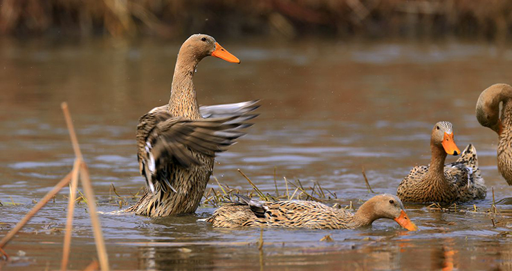 微山麻鸭产地(或分布)山东省南四湖地区,即南阳湖、独山湖、昭阳湖和微山湖。 数量:存栏鸭50万只以上。