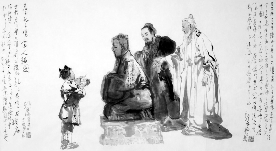 “站住!”孔子的车驾似乎被人挡住了。孔子不知道前面发生了什么事,下车一看,见自己一个弟子正与一个八九岁的小男孩在交谈着什么,就走了过去。